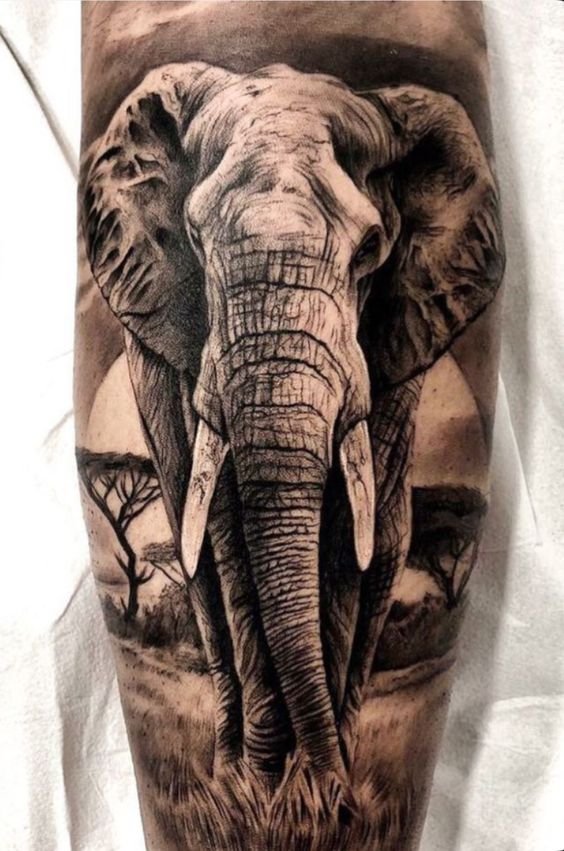 Afrikanische Länder und Zentralasien sind der Ursprung des Elefanten-Tattoos. Der Elefant gilt als Symbol für Treue, Frieden, Vertrauen, Loyalität und Macht. Der Elefant wird für seine Ausdauer und Stärke verehrt. Für Buddhisten bedeutet das Bild eines Elefanten spirituelles Wissen, Beständigkeit und innere Energie. Im mittelalterlichen Europa bezeichnete das Bild eines Elefanten Askese und Keuschheit. Diese Interpretation ist darauf zurückzuführen, dass die Elefantenweibchen während der Schwangerschaft keinen sexuellen Kontakt mit dem anderen Geschlecht haben. Diese Abstinenz von sexuellen Aktivitäten dauert achtzehn Monate lang. Im alten Rom verkörperte der Elefant Weisheit und Sieg. Als das Reich fiel, stellte die christliche Religion einen Elefanten dar, der eine Schlange drückte, als Zeichen des Sieges des Guten über das Böse.