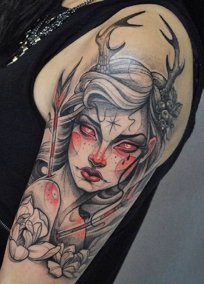 Die Tätowierung einer Elfe auf dem Körper eines Mannes ist ein Zeichen für Mut, Tapferkeit und Ausdauer.
