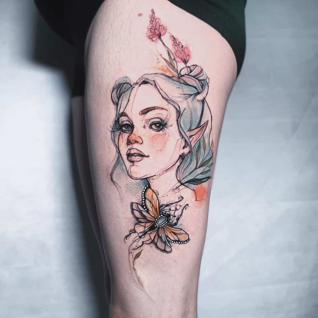 Die Elfe ist gleich mit mehreren Bezeichnungen im Tattoo-Bereich gefüllt. Im Grunde ist diese Tätowierung voller positiver Energie, Charme und Geheimnis. Die Interpretation kann jedoch je nach ihrem Image variieren.