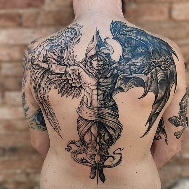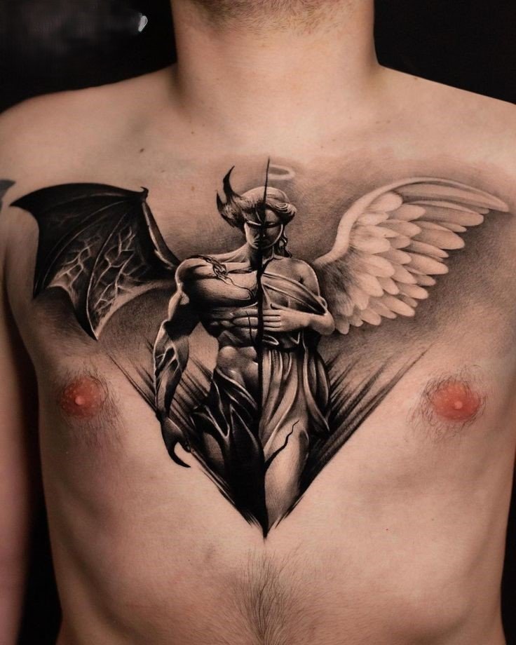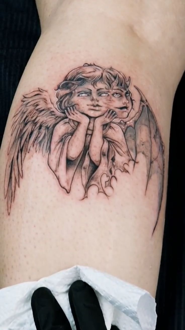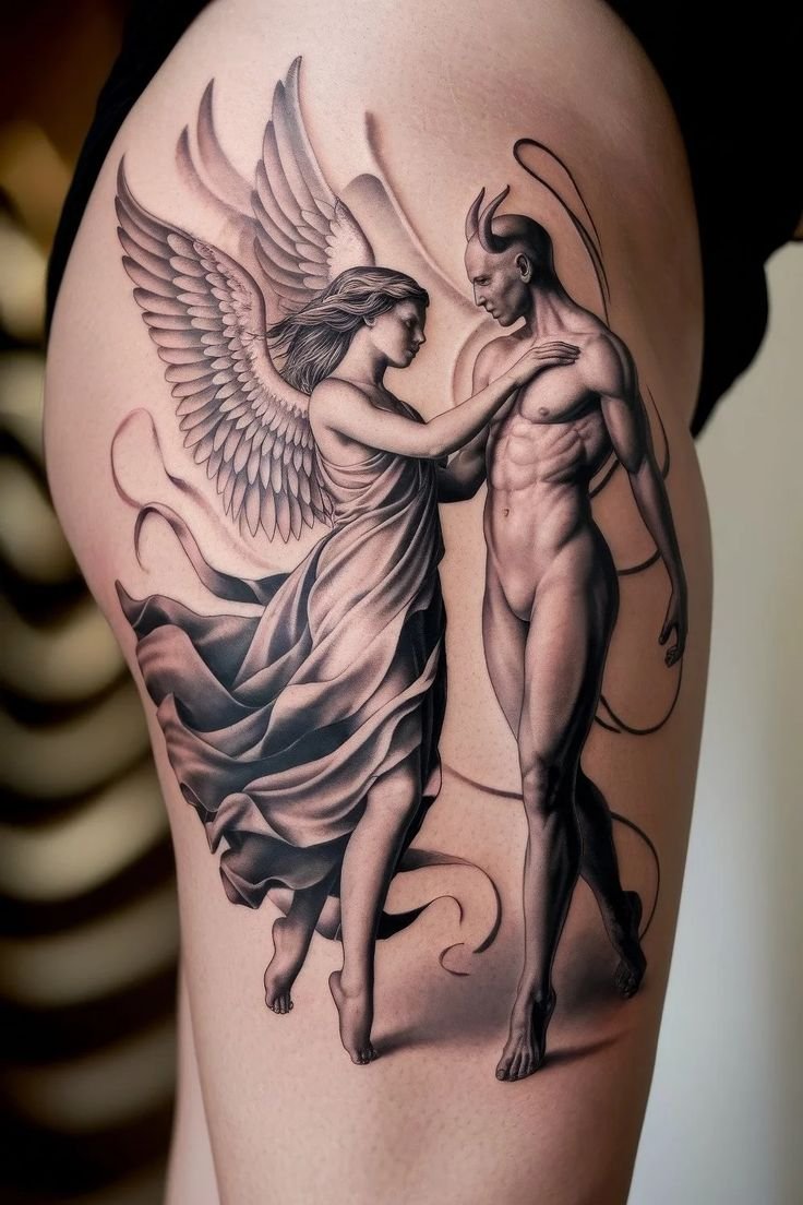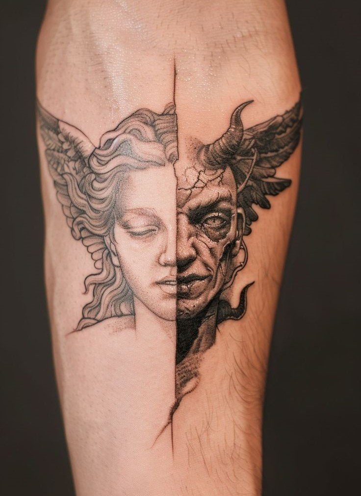 Ein Engel-und-Teufel-Tattoo stellt mehr dar als nur mythologische Figuren.