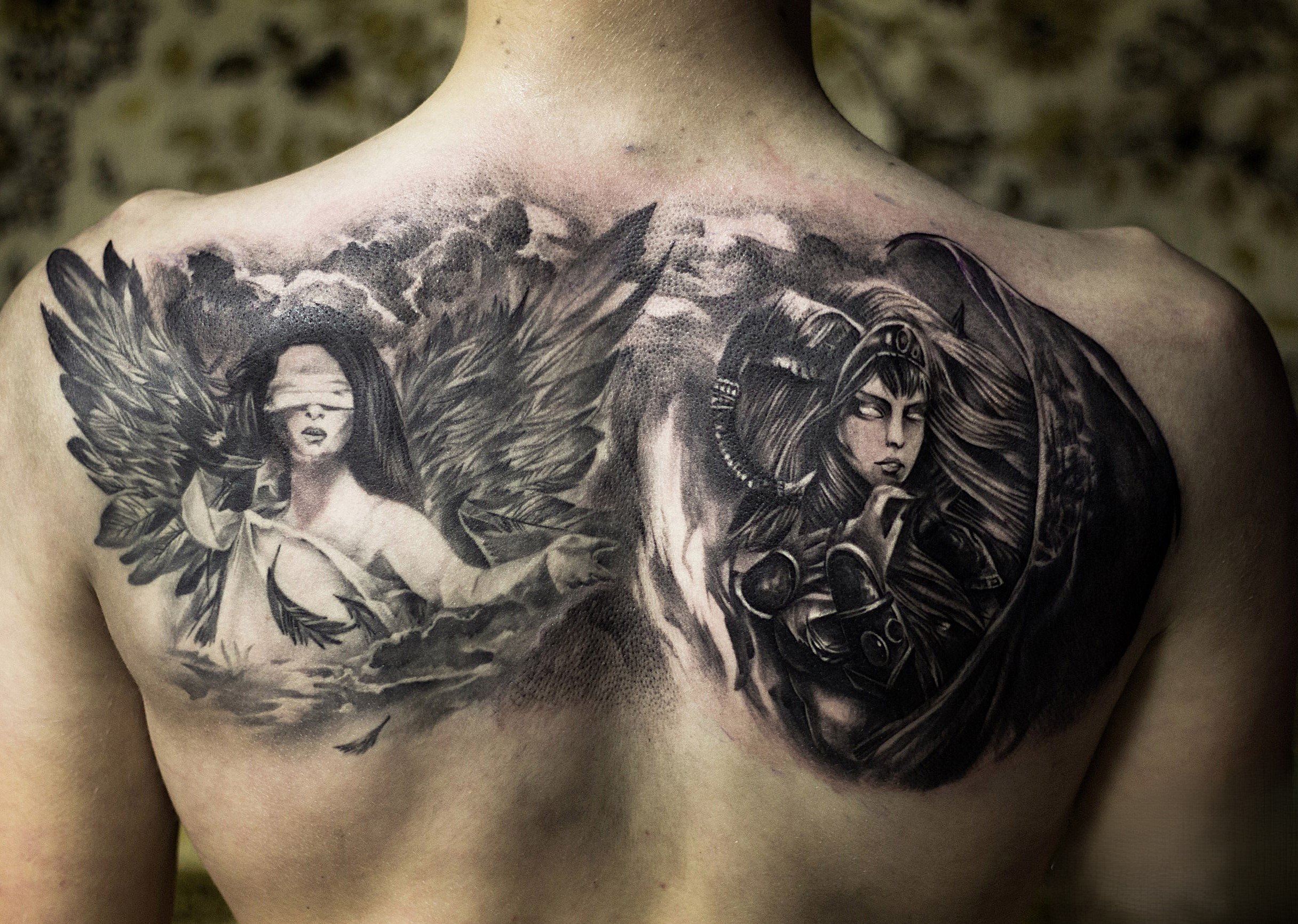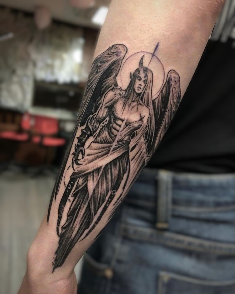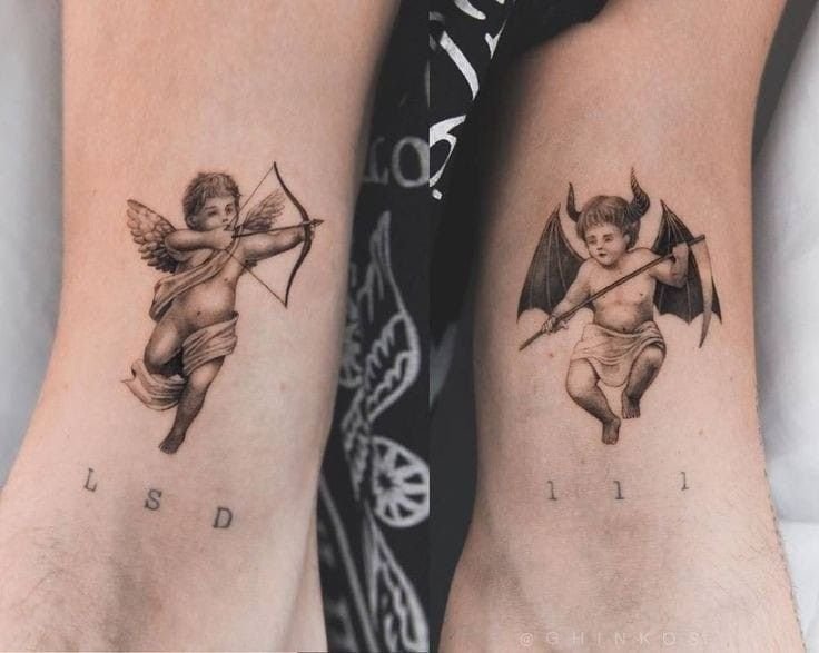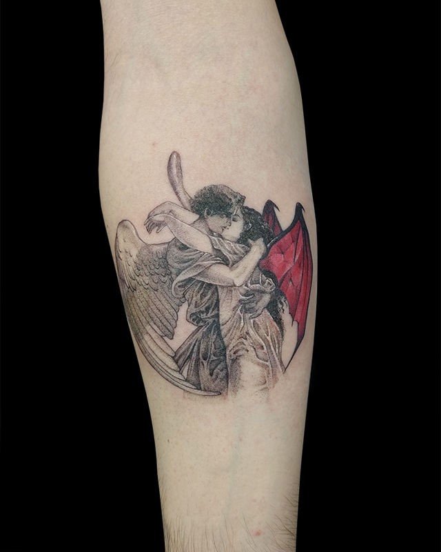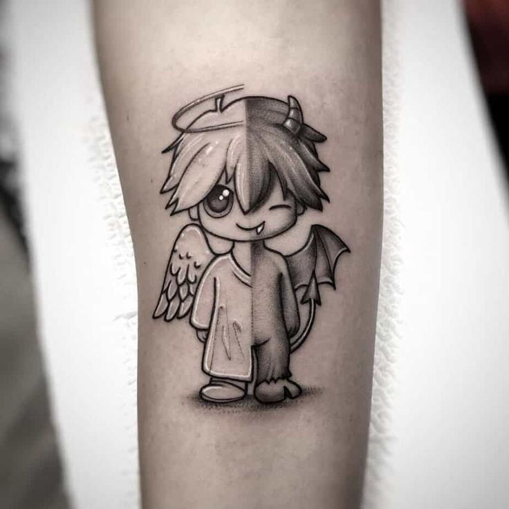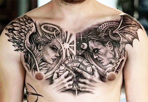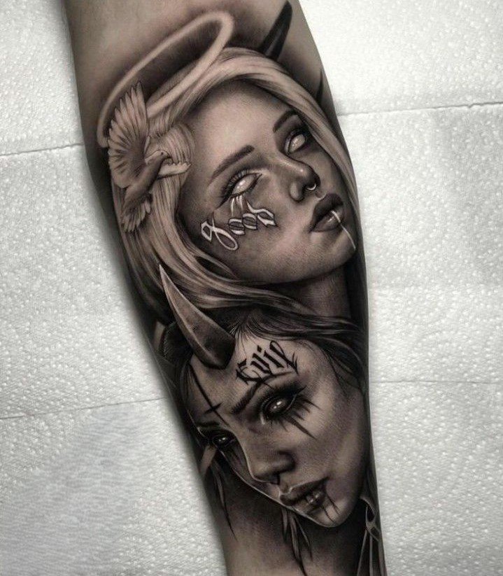 Ein Engel-und-Teufel-Tattoo stellt mehr dar als nur mythologische Figuren.