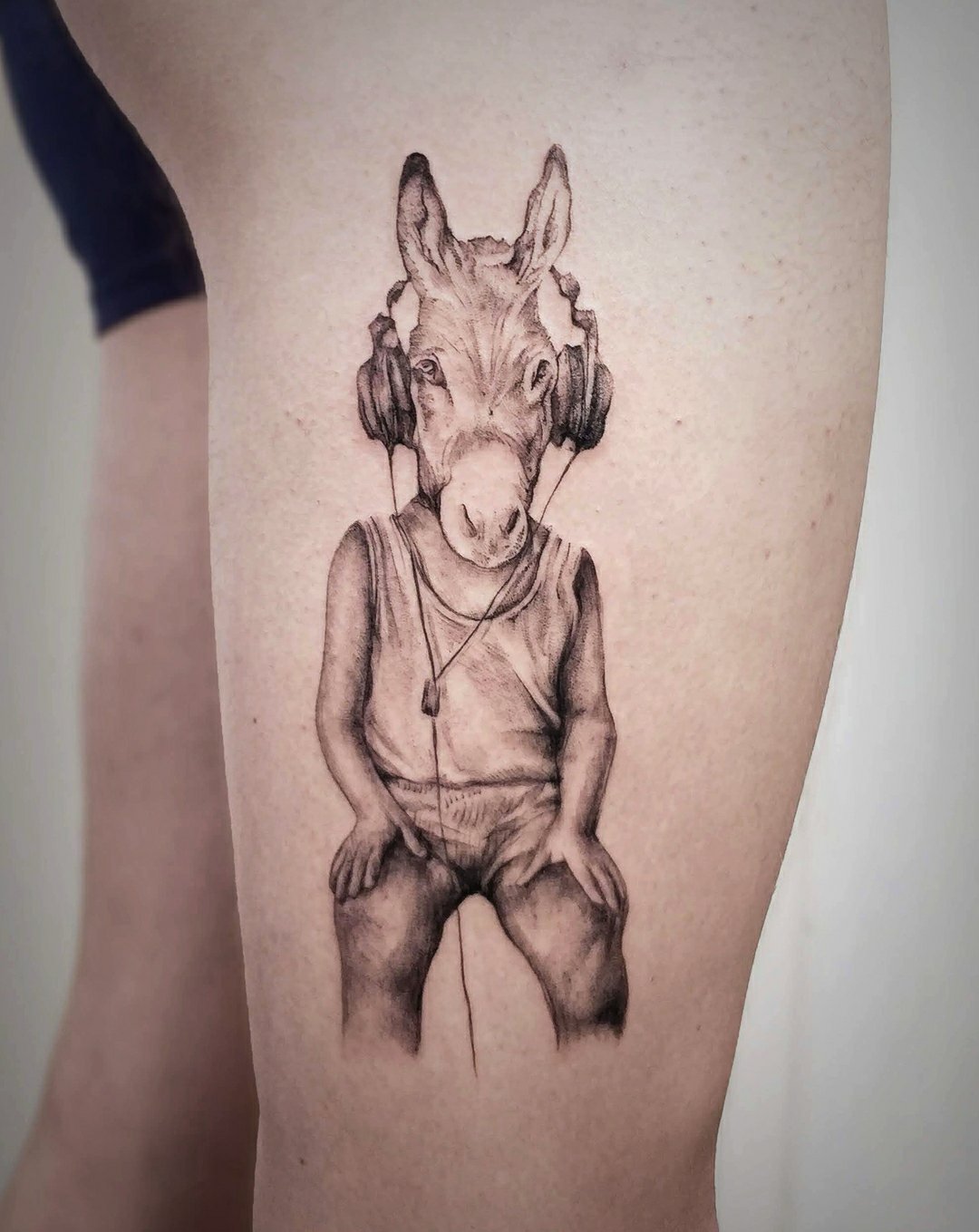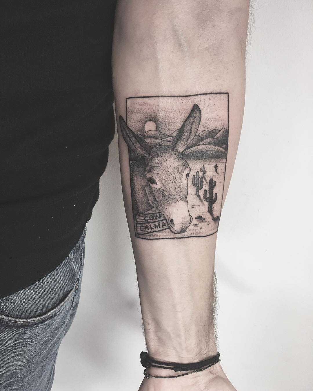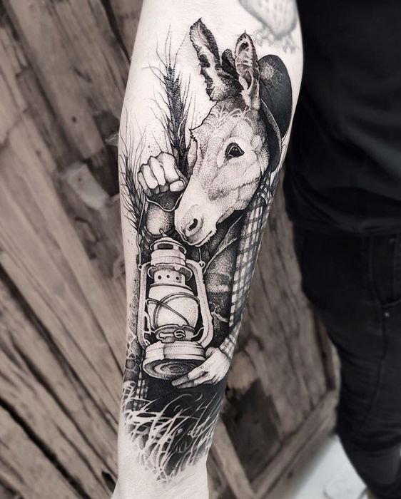Ein Esel-Tattoo könnte eine faszinierende Wahl für einen Liebhaber bestimmter Werke oder Themen sein.