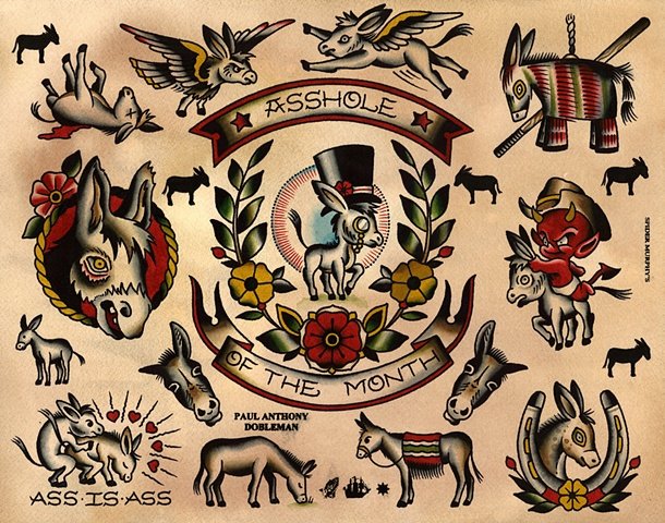 Die Tätowierung eines Esels steht für den Charakter einer Person, insbesondere für harte Arbeit und Durchsetzungsvermögen.