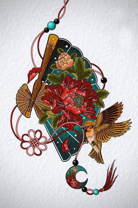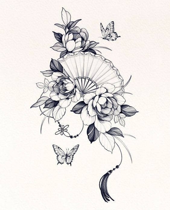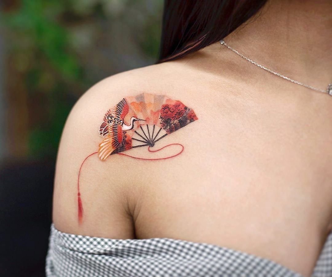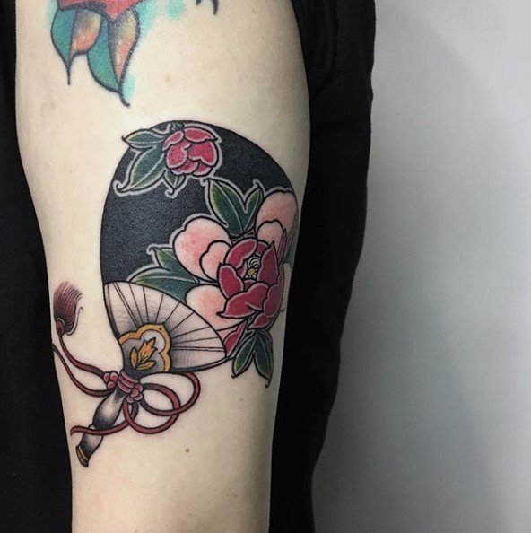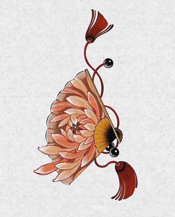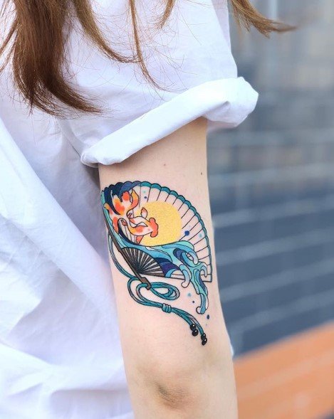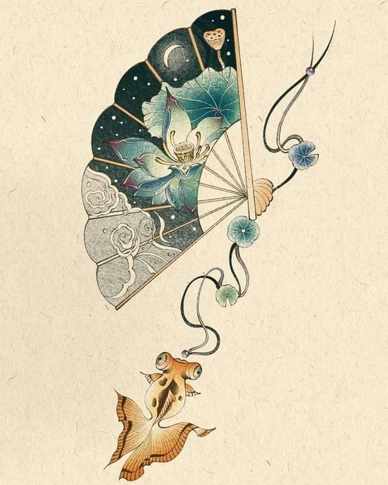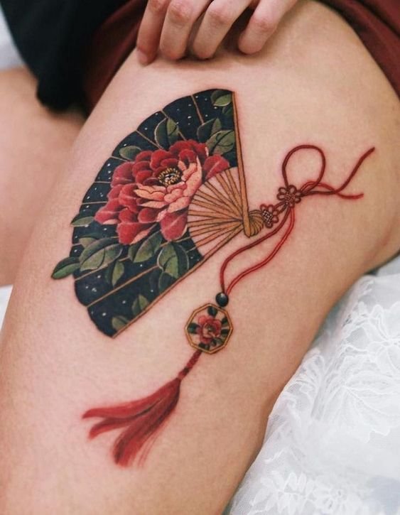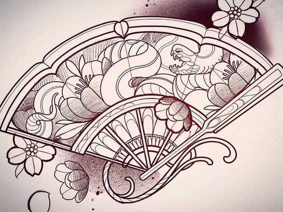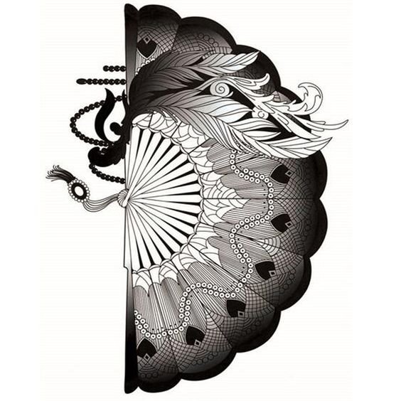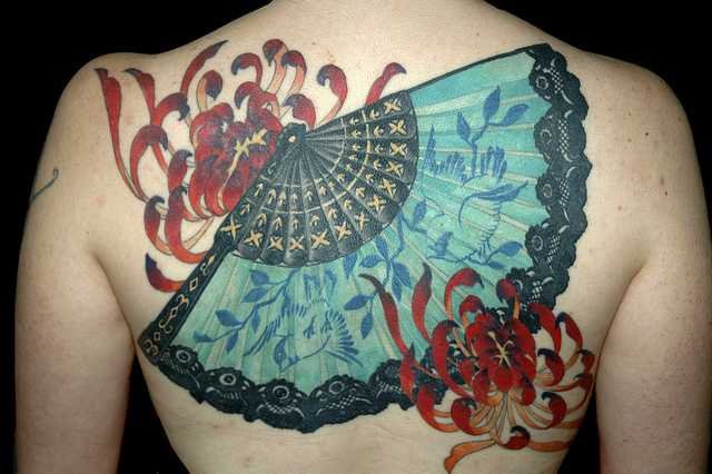 In der Kultur des Ostens ist der Fächer ein sehr beliebtes Tattoo.