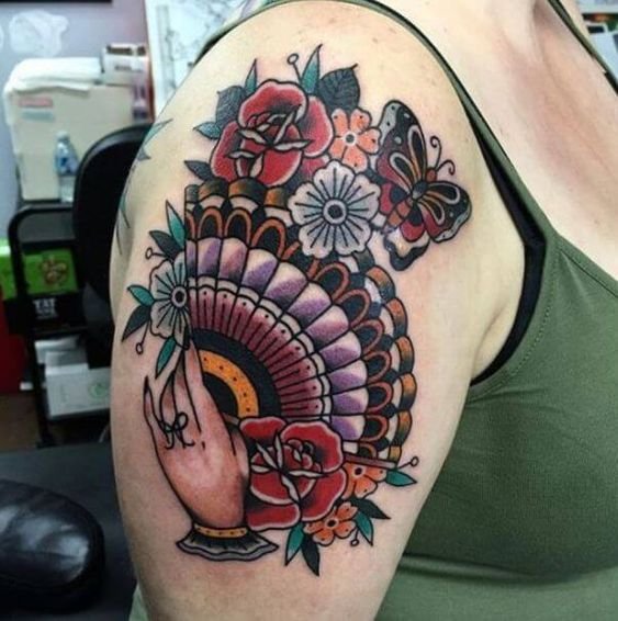Tattoo-Fächer sehen auf jedem Körperteil wunderschön und originell aus, sie können in jeder Größe und in jedem bevorzugten Stil dargestellt werden.