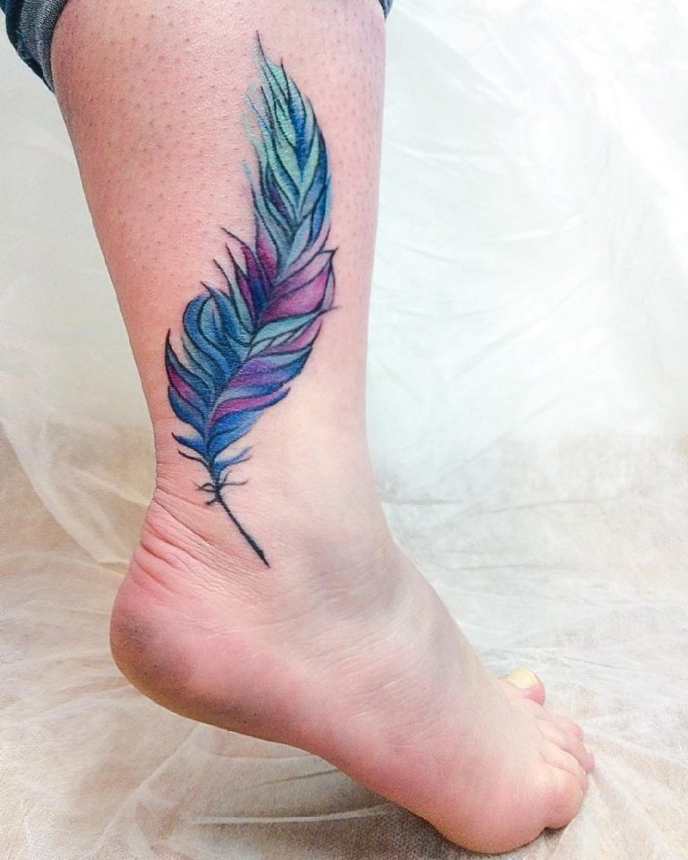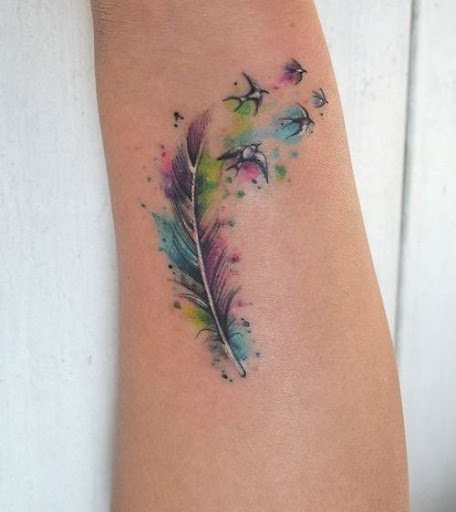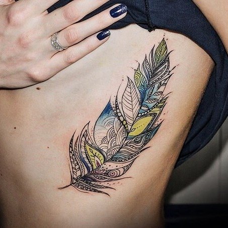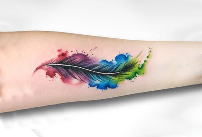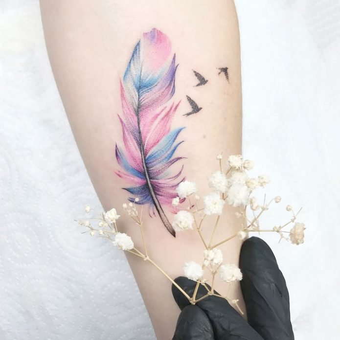 Federbilder können in einer Vielzahl von Stilen, Techniken, in einer Vielzahl von Farben und mit verschiedenen Zusätzen ausgeführt werden. Für Frauen haben Federn hauptsächlich die Bedeutung von Leichtigkeit und Zärtlichkeit, aber auch Federn können helle und kontrastreiche Schönheit zeigen, alles hängt von der gewählten Farbe und dem Design ab. Männer verwenden Federn, um ihren Mut, ihr Selbstvertrauen, ihren Krieger- und Verteidigergeist zu betonen. Es ist erwähnenswert, dass die Hauptbedeutung der Feder Tattoo-Besitzer selbst zuweist. Für manche ist dieses Bild ein Talisman, für andere eine Erinnerung an ein wichtiges Ereignis oder eine wichtige Person, für wieder andere ist es einfach ein schönes Bild auf dem Körper.