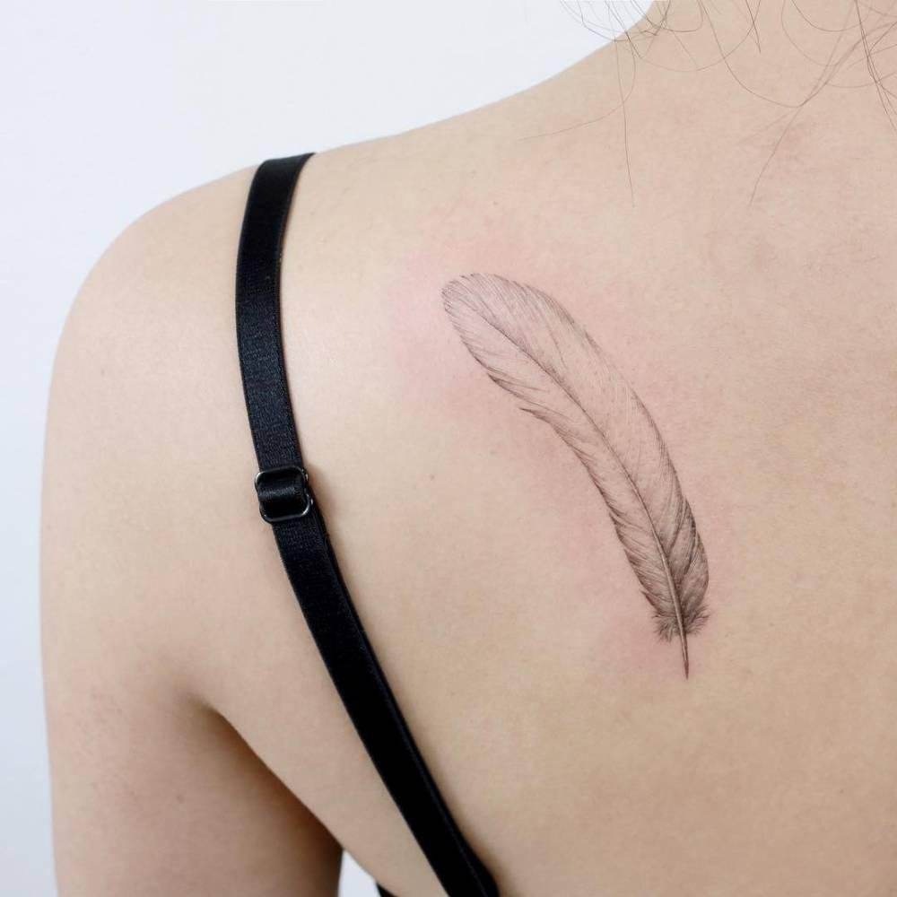 Diese Bilder sind sowohl bei Frauen als auch bei Männer beliebt. Für Frauen symbolisiert die Feder normalerweise Leichtigkeit, Zärtlichkeit und Freiheit, während sie für Männer ein Symbol für Mut, Tapferkeit, Entschlossenheit und Stärke ist.