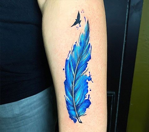 Meistens wird eine einzelne Feder eines beliebigen Vogels (Eule, Schwalbe, Adler, Feuervogel usw.) auf verschiedene Körperteile Tätowiert. Das Bild kann in einer Vielzahl von Farben, als klassische Feder in Schwarz-Weiß-Tönen und als verschiedene Federn in leuchtenden Farben gestaltet werden. Auch die Farbe der Federn hat eine besondere Bedeutung.