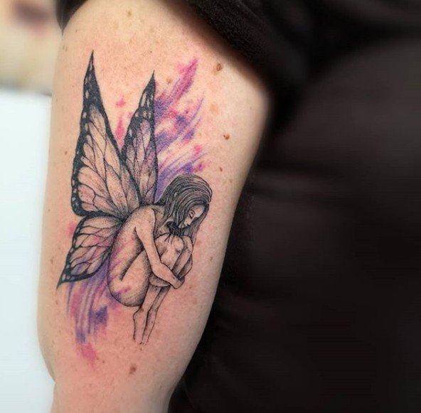 Eine Fee ist ein überirdisches Fabelwesen, das hauptsächlich in der Gestalt einer schönen Frau mit schönen und bunten Flügeln vor uns steht. Dieses Tattoo gilt als das häufigste Bild für fantastische Tattoos. Feen-Skizzen-Tattoo in der modernen Welt zeichnet sich als positiver Charakter mit einer Vielzahl von Bezeichnungen und Merkmalen aus.