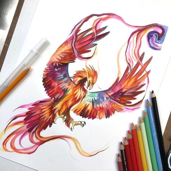 Viele Menschen, die an das Konzept der Reinkarnation glauben, tragen ein Bild dieses wundersamen Vogels auf ihrem Körper. Viele Menschen glauben auch, dass der Feuervogel ein Zeichen des Feuers und auch der Sonne ist, schon sein Name deutet darauf hin.