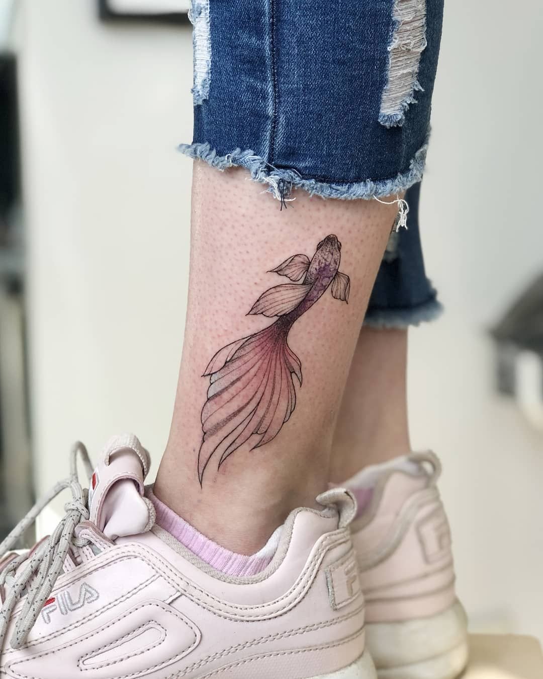 Größere Tätowierungen sind meist auf der Schulter, dem Rücken, der Brust oder der Seite zu finden. Kleinere Fisch-Tattoos sehen auf der Hand, dem Handgelenk oder dem Unterarm ästhetisch ansprechend aus, und nicht selten findet sich ein Fisch-Tattoo auch auf den Beinen.