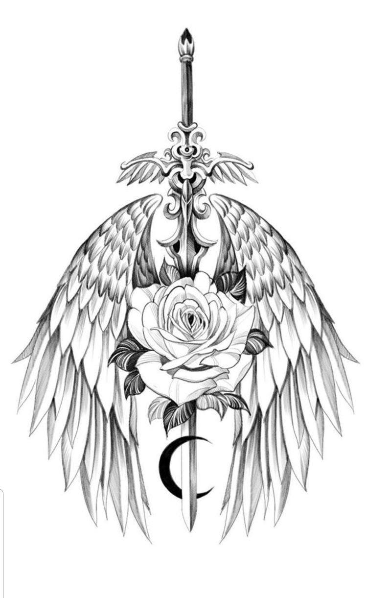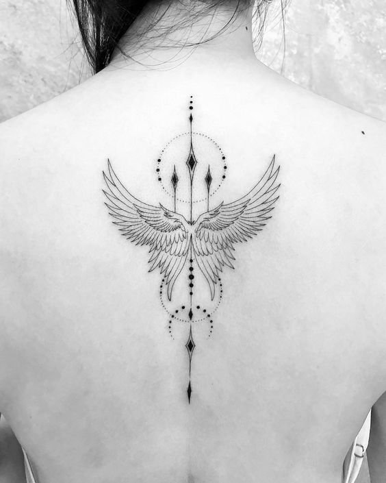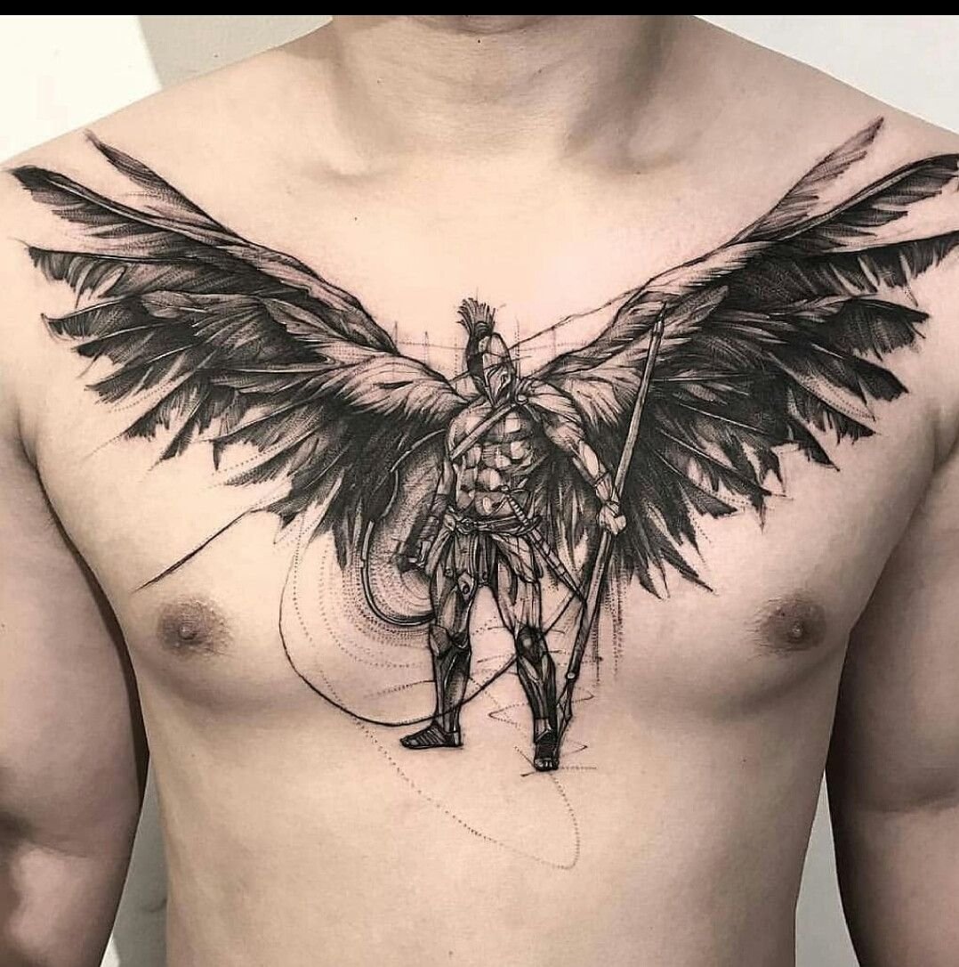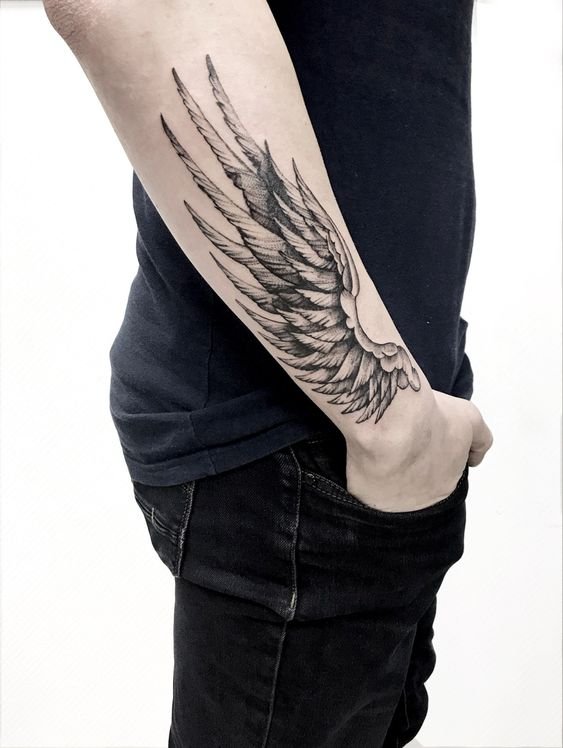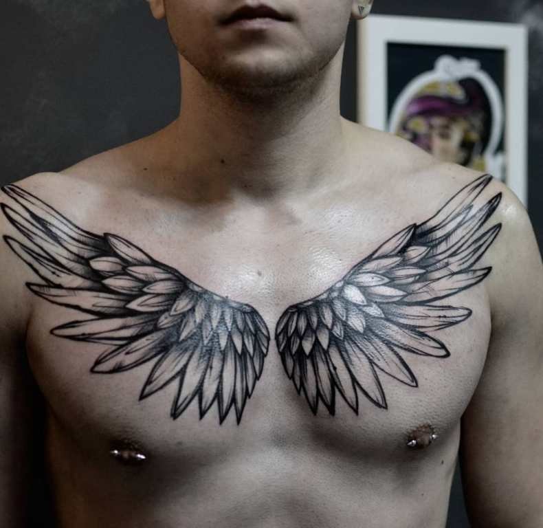 Was das Männer-Tattoo betrifft, werden die Flügel normalerweise in einer einfarbigen Farbenskale mit einer symmetrischen Anordnung dargestellt. Bei Männern befinden sich die Flügel in den meisten Fällen auf dem Rücken oder auf den Schulterblättern.