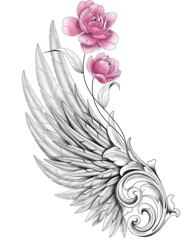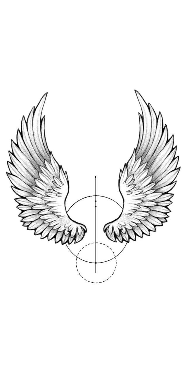 Eine Vorlage von Flügeln ist ein der beliebtesten Bilder im Tattoo-Bereich.
