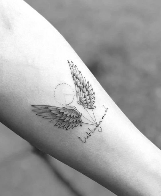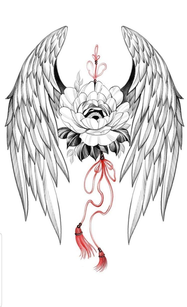 - Vorlage von Engelsflügeln. Sie verkörpern Unbescholtenheit und Innerlichkeit. Oft kann ein solches Bild den Namen eines Geliebten ergänzen. Für den Fall, wenn der Name des Gestorbenen auf dem Tattoo abgebildet ist, bedeutet das Tattoo die schöne Erinnerung an ihn.