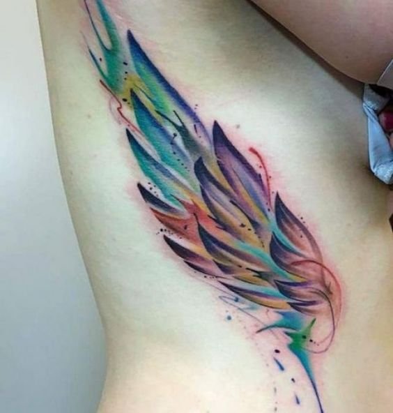 - Die Tätowierung der Flügel, von denen die Federn wegfliegen, spricht von einem ungerechtfertigt schnellen Zeitablauf.