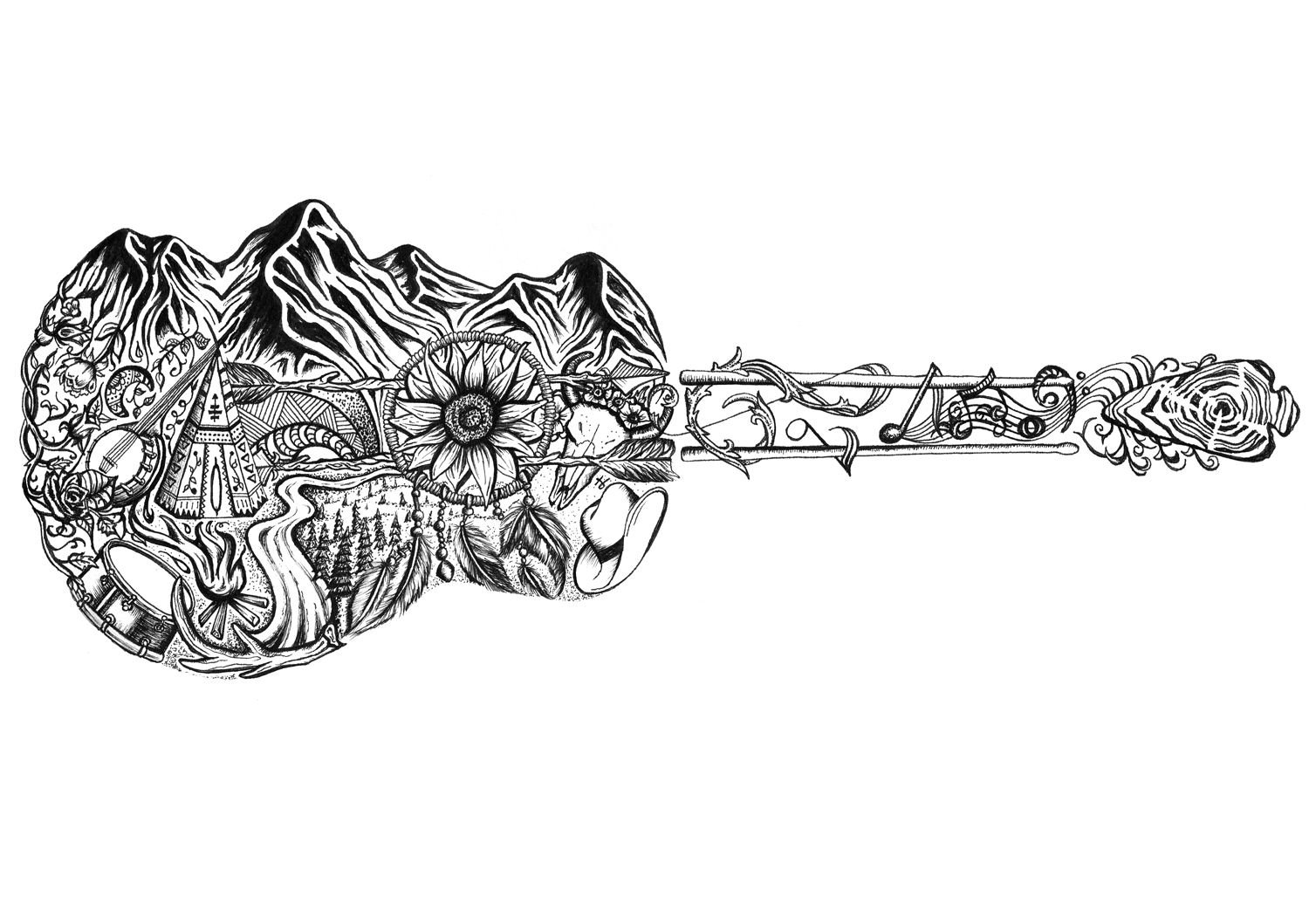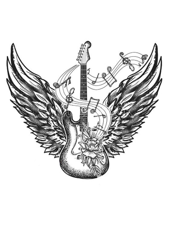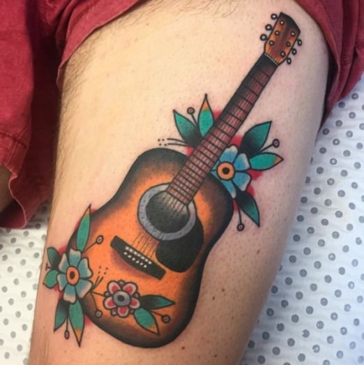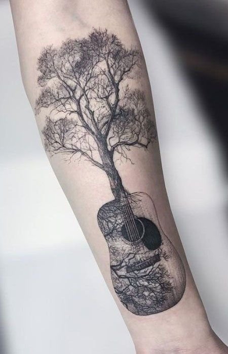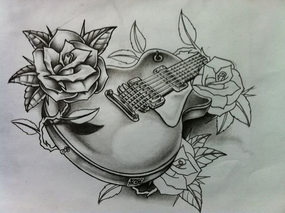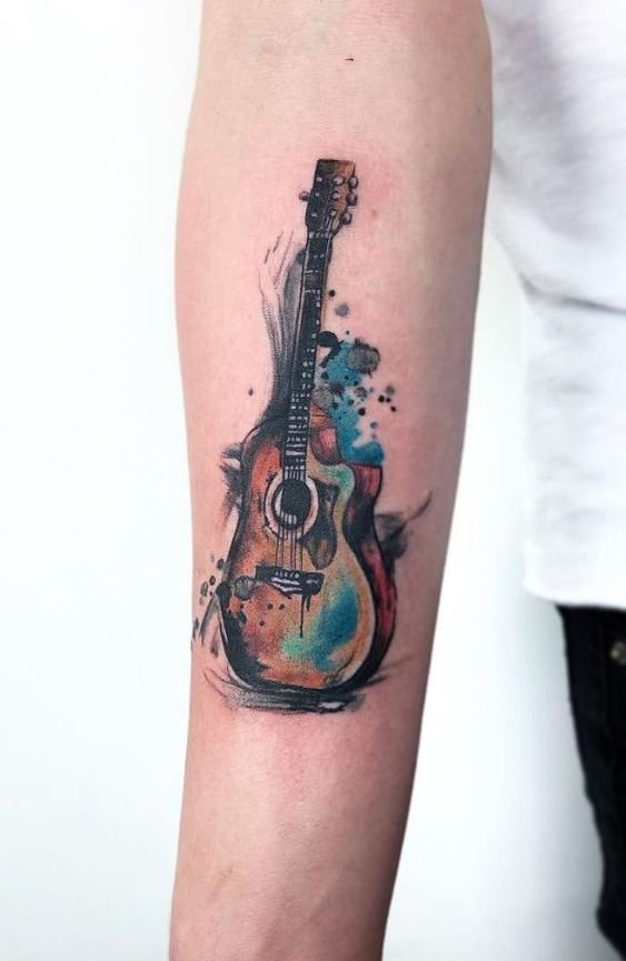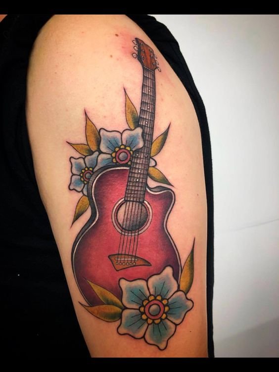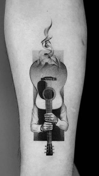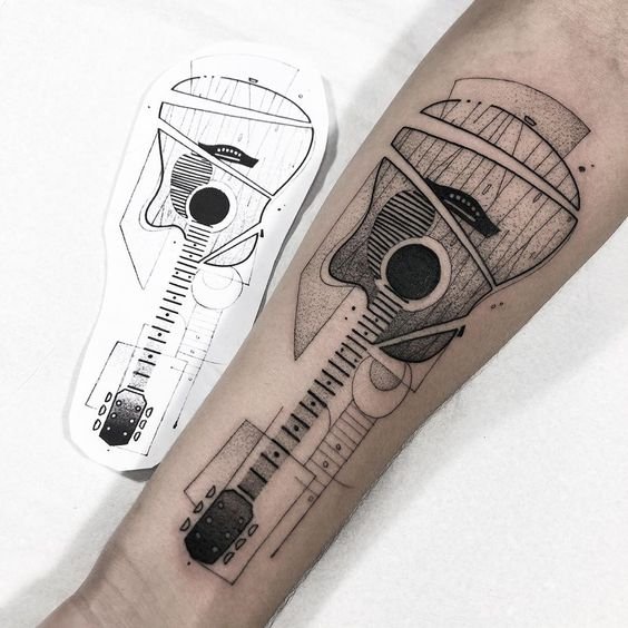 Ein Tattoo mit einer Gitarre hat viele Möglichkeiten.