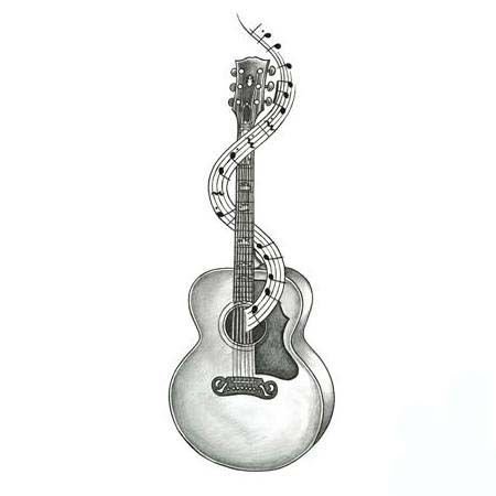Es gibt mehrere Optionen, die die grundlegendsten Bedeutungen einer Tätowiergitarre darstellen.