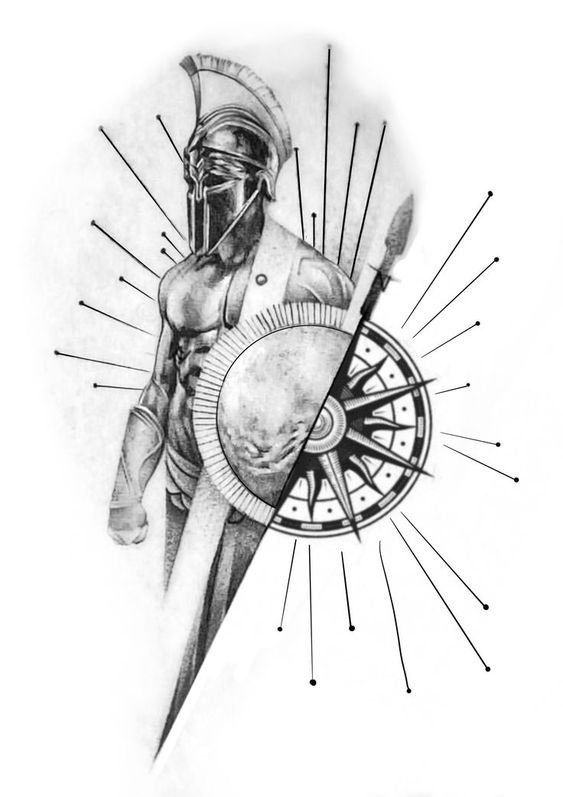 Ein Tattoo mit einer Gladiatorwaffe spricht von der Entschlossenheit eines Mannes, der Fähigkeit, allein zu stehen und für seine Prinzipien zu kämpfen.