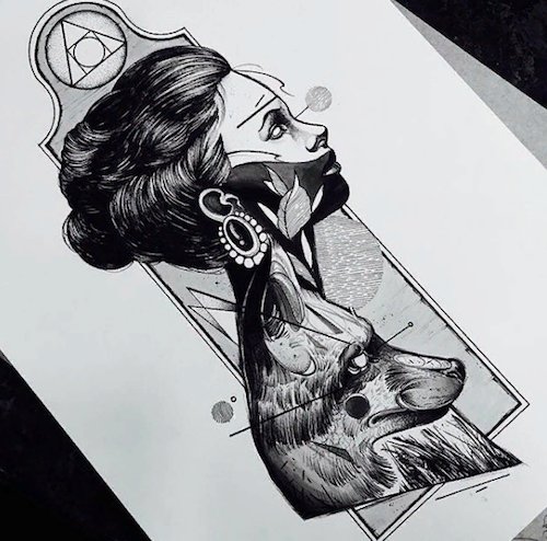 Tattoo im Stil "Grafik" sind bei Männern und Frauen beliebt, nur die Skizzen unterscheiden sich.
