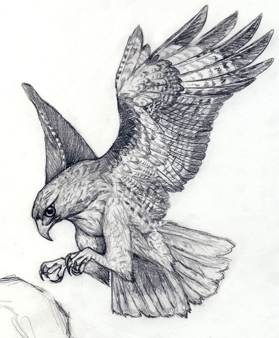 - So hat die Skizze des Falken die Bedeutung der Freiheit, denn in der Natur erobern die Falken frei die Weiten des Himmels, in jeder für sie bevorzugten Richtung.