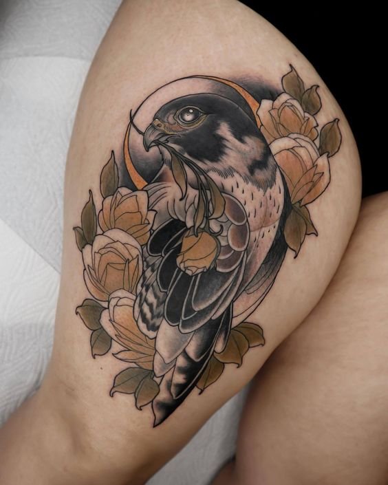 - Es wird angenommen, dass Falken eine Partnerin fürs Leben wählen. Daher steht die Tätowierung eines Falken für Loyalität, die Fähigkeit, aufrichtig zu lieben, eine Stütze und ein Schutz für seinen Partner zu sein.