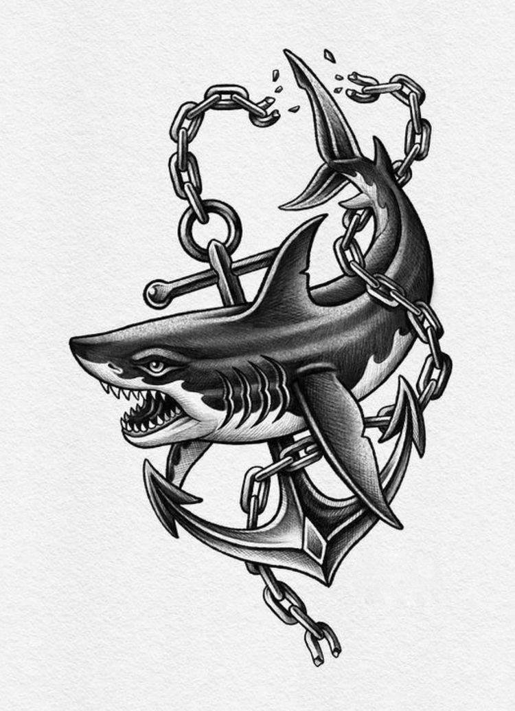 Welche Bedeutung das Tattoo genau hat, hängt davon ab, was die Person tut. Menschen, die in direktem Zusammenhang mit dem Meer stehen (Fischer und Segler), bevorzugen häufig Hai-Skizzen.
