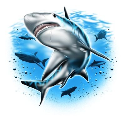 Die Bilder von Meeresraubtieren sind am vielfältigsten und werden in verschiedenen Stilen und Techniken ausgeführt.