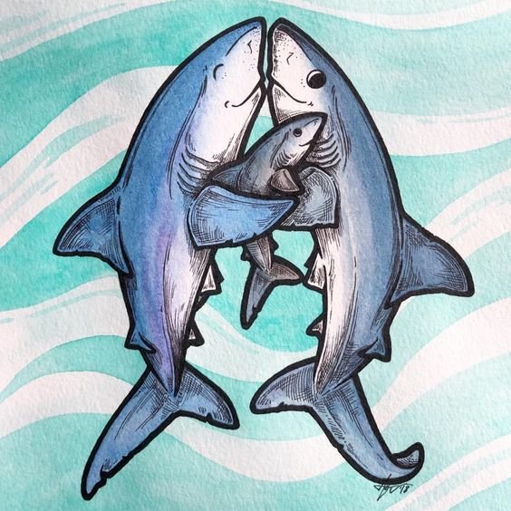 Dies geschieht, wenn ein Kunde mehrere Raubtiere gleichzeitig füllen möchte, sowohl in einer normalen Meeresumgebung als auch in einem abstrakten Stil. Trotzdem halten viele Leute bei einer Silhouette, normalerweise Weiß- oder Hammerhai. Viele meinen, dass den Vertretern die hellsten und mächtigsten Merkmale der Haie innewohnen. Es wird hauptsächlich eine Skizze gewählt, die den Hintergrund des Meeres und natürlich das Raubtier selbst sowie die Bilder der Umrisse des Raubtiers selbst darstellt. Bilder, auf denen der Hai in einem abstrakten Stil ausgeführt wird, sehen recht interessant aus. Solche Skizzen sind auch sehr beliebt. Tattoo von Haien sind im animierten Format sehr interessant und lustig, da es viele Cartoons gibt, in denen der Hai die Hauptfigur der Handlung ist. Zeichnungen von Comic-Haien werden von der jüngeren Generation mehr bevorzugt.