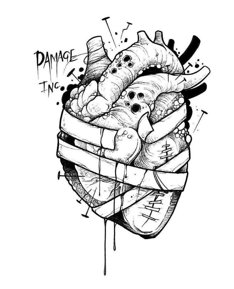 - Skizze eines gebrochenen Herzens bedeutet verlorene Liebe, Qual und Trauer. Auch diese Zeichnung zeigt eine dünne Linie von der Liebe zum Hass.