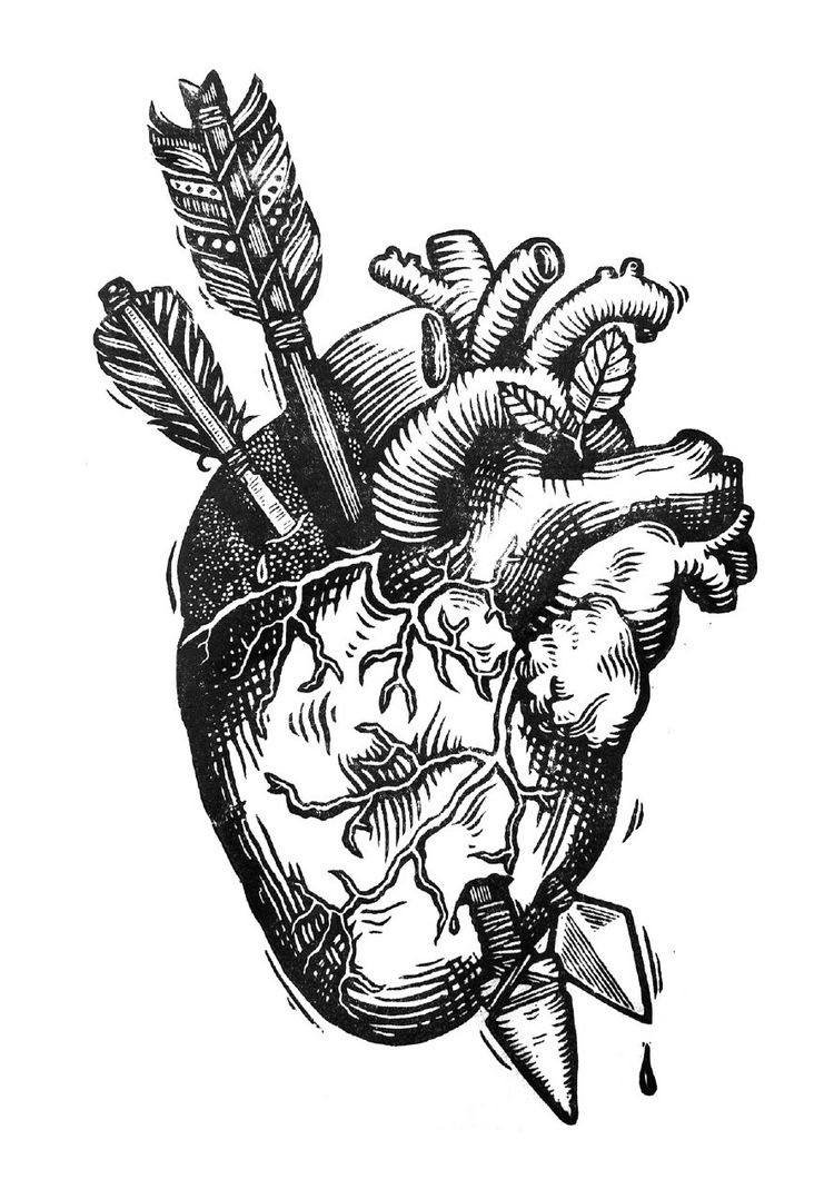 - Die Skizze eines Herzens mit Pfeilen oder einem Schwert steht für Tapferkeit und Mut. Dies ist ein mittelalterliches Motiv, eine Zeit des Rittertums, der Tapferkeit und des Adels.