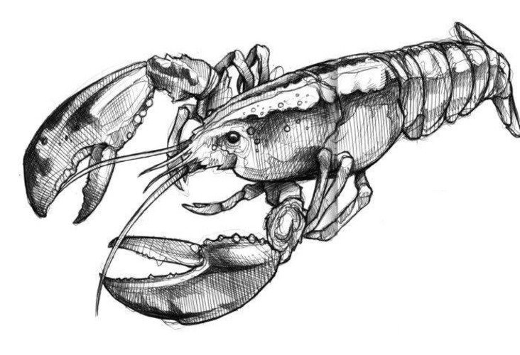 Mit diesen Scheren kann er jedes Objekt fest ergreifen und beharrlich halten. Diese Entschlossenheit spiegelt den Charakter eines Mannes wider, der sich für eine Hummer-Skizze für ein Tattoo entscheiden könnte.