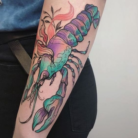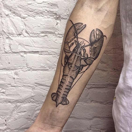 Sowohl für Frauen als auch für Männer wäre eine solche Skizze eine ausgezeichnete Wahl. Wir stellen jedoch fest, dass Hummer häufiger auf einem weiblichen Körper zu finden ist, kunstvoll mit lebendigen Farbtönen und anderen Elementen verziert. Bei der Auswahl einer Skizze ist es ratsam, über das Gesamtbild nachzudenken. Wenn das Meeresthema in der Zukunft auf dem Körper fortgesetzt wird, kann der Hummer als Hintergrund für den Rest des Tattoos dienen.