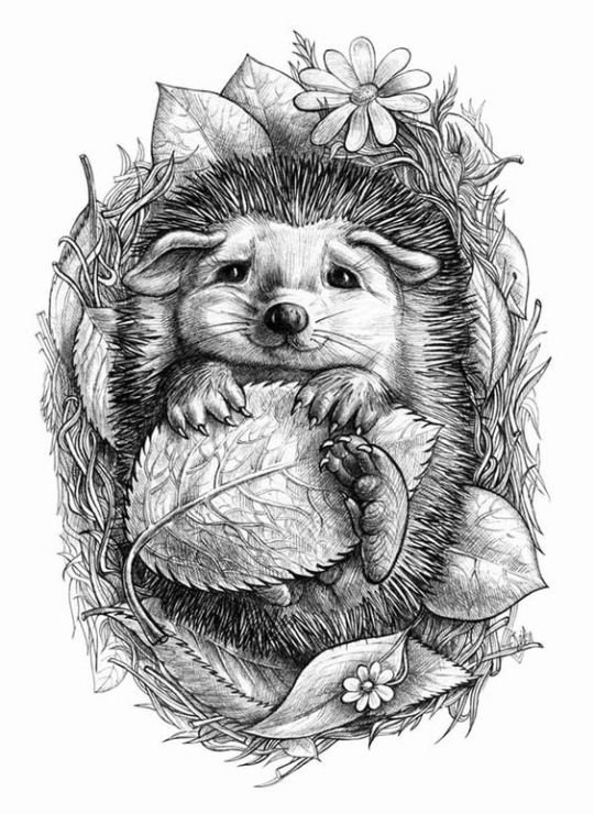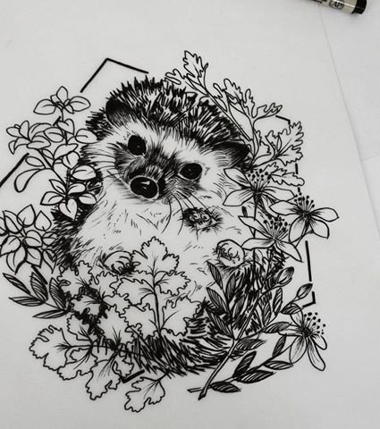 - Oft finden Sie Bilder von einem Igel, wo er mit Blättern, Beeren oder Blumen gelagert wird. Ein Tattoo mit diesem Bild zeigt an, dass sein Besitzer eine sehr sparsame Person ist, immer Gäste empfängt und jeden unterhält. Solche Leute lieben gute Unternehmen und haben treue Freunde, immer gutmütig und fröhlich.