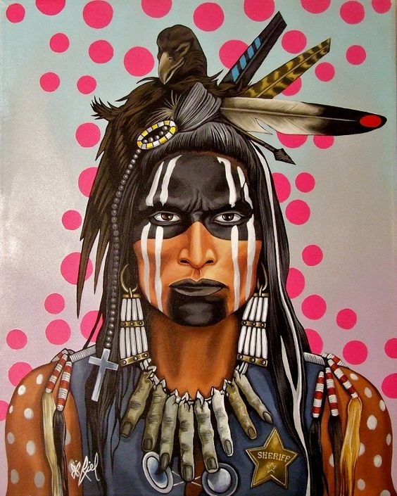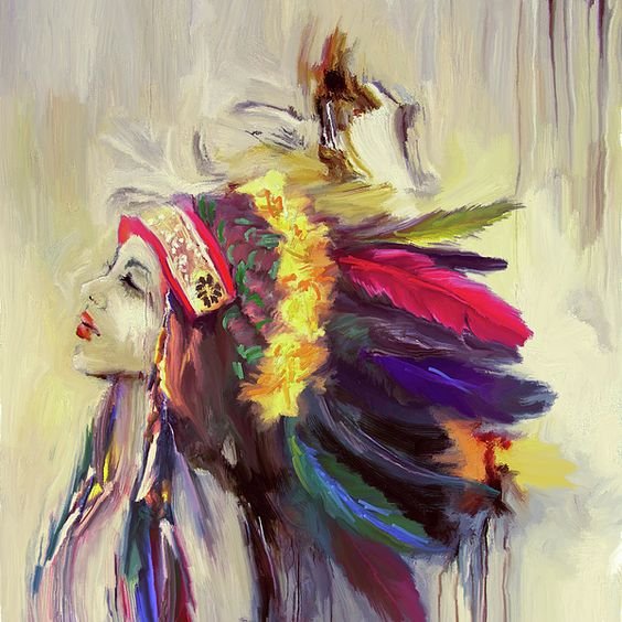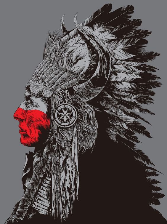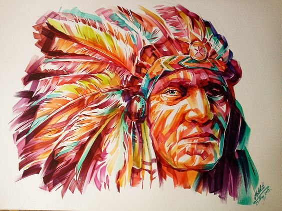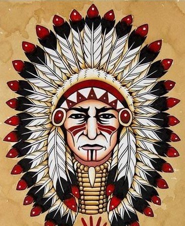 Die Indianer werden in der Regel in Kopfbedeckungen dargestellt, die aus Federn von Vögeln und mit der traditionellen Gesichtsbemalung hergestellt wurden. Aber jedes Bild ist mit einem besonderen Vorwurf gefüllt und völlig einzigartig. Die Vorlage eines Indianers zieht immer die Aufmerksamkeit auf sich, fasziniert durch seine Einzigartigkeit und Schönheit.