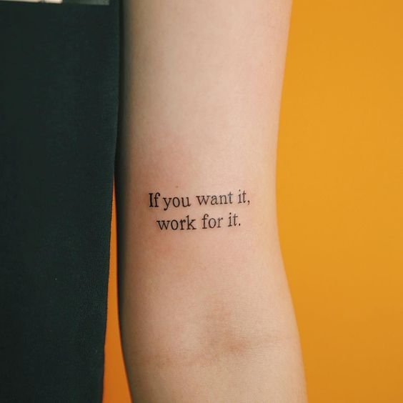 Oft werden Lieblingszitate aus einem Buch, Lied oder Film für ein Tattoo ausgewählt. In der Regel hat das ausgewählte Zitat eine besondere Bedeutung für eine Person, so dass nicht nur der Satz, sondern auch die in diesem Moment empfundenen Emotionen der Person am Körper verewigt werden.