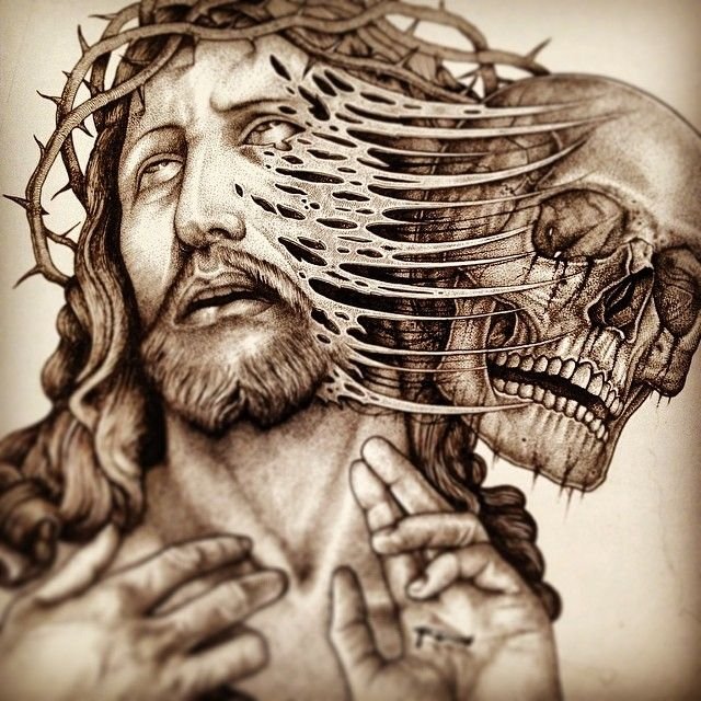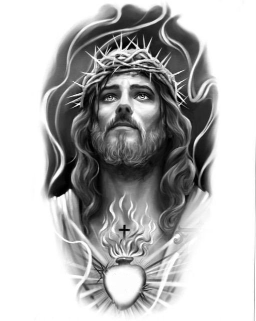 In der Regel wird Jesus beim Tätowieren nicht in voller Größe auf den Körper gezeichnet, sondern nur sein Gesicht.