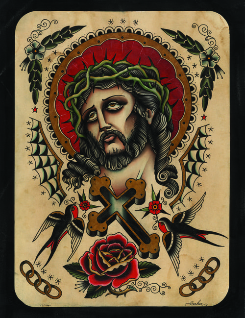 Unter den vielen verschiedenen Tattoo sind religiöse Bilder, insbesondere Jesus Christus, sehr gefragt.