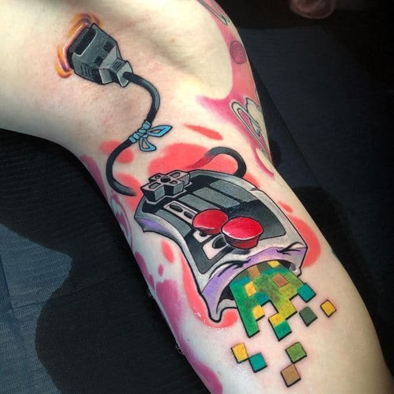 Warum so? Klassiker sind immer in Mode, nämlich diese veralteten Geräte haben sich zu einem unerschütterlichen Klassiker entwickelt, so dass Sie sich selbst und junge Menschen und mehr Erwachsene genießen können. Es ist immer noch die gleiche rechteckige Box, die mit vielen verschiedenen Tasten ausgestattet ist. Wie könnte die Körperarbeit aussehen, wenn eine Joystick-Skizze für die Tätowierung verwendet wird? Es könnte ein oder zwei Manipulatoren sein, die nebeneinander stehen, und der Hintergrund könnte die Konsole selbst sein. Die Tätowierung kann auch durch ein Bild eines alten Fernsehers ergänzt werden, auf dem ein Spiel läuft.