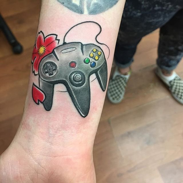 Es ist schwer zu sagen, auf wen diese Tätowierung besser passen würde, da ein Joystick aufgrund seines Designs auf jeden Körperteil einer beliebigen Person gestochen werden kann.