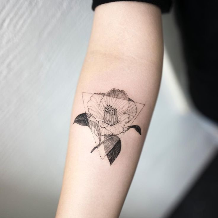 Es stellt sich heraus, dass Kamelie mit dem Teebaum verwandt ist, sie haben eine gemeinsame Familie. In europäischen Ländern sind diese beiden Pflanzen daher häufig verwechselt. Die Heimat dieser wunderschönen bunten Blume ist Asien, und zwar der südöstliche Teil. Kamelie ist eine berühmte Blume in solchen Ländern wie China und Japan, sie ist ein klassisches Bild in der Malkunst. In Japan wird Kamelie Tsubaki genannt. Nach unserer Zeitwende erwarb die Provinz Kyūshū den gleichen Namen nach dem Sieg des Gouverneurs über den verbrecherischen Rädelsführer. Wie viele Legenden und Geschichten erzählen, wurde die Waffe des Gouverneurs aus Tsubaki-Zweigen (Kamelienzweigen) hergestellt. Demnach erhielt das Tattoo mit dem Bild einer Blume die Bedeutung vom Sieg, Mut und Stärke. Es gibt auch eine Legende, dass es sich nur Samurai früher leisten konnten, ein Bild von einer Kamelienblume auf ihren Körper aufzutragen. Aber die Zeit vergeht, Traditionen ändern sich, neue Bräuche entstehen allmählich. Daher kann sich heutzutage jeder leisten, ein Tattoo mit einer Kamelie aufzutragen.