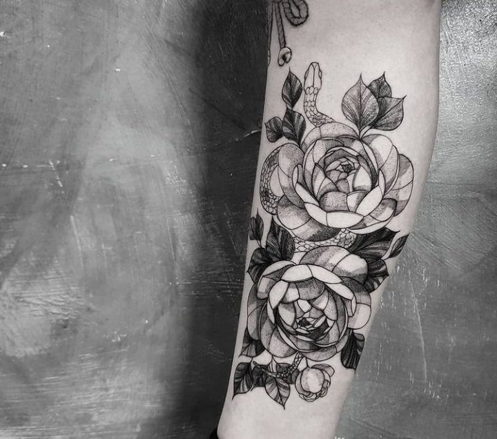 Obwohl die Kamelie als männliche Blume gilt, tragen die Frauen häufigKamelien auf ihrem Körper auf. Gleichzeitig können Frauen eine spezielle Bedeutung in ein Tattoo nicht einlegen, sondern ihren Körper einfach mit bunten Kamelienblumen verzieren.