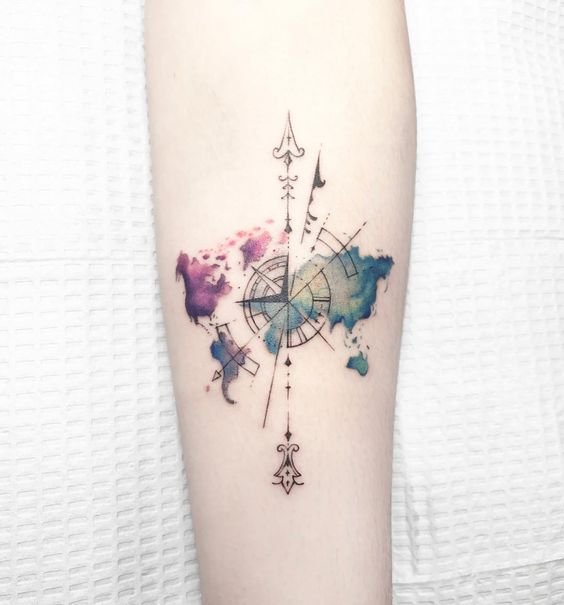 Das Motiv eines Teils der Weltkarte als Tattoo wird oft von Reiselustigen gewählt, um ihre Abenteuerlust und ihre globale Perspektive zu symbolisieren. Einzelne Länder oder Kontinente können als Symbole verwendet werden, und das Tattoo kann an verschiedenen Körperstellen platziert werden. Es dient als Erinnerung an persönliche Reisen und bedeutende Lebensereignisse, wobei die Gesamtkarte nach und nach vervollständigt wird. Ein solches Tattoo kann auch von verschiedenen Künstlern gestaltet werden und zeigt die Vielfalt der erlebten Erfahrungen.