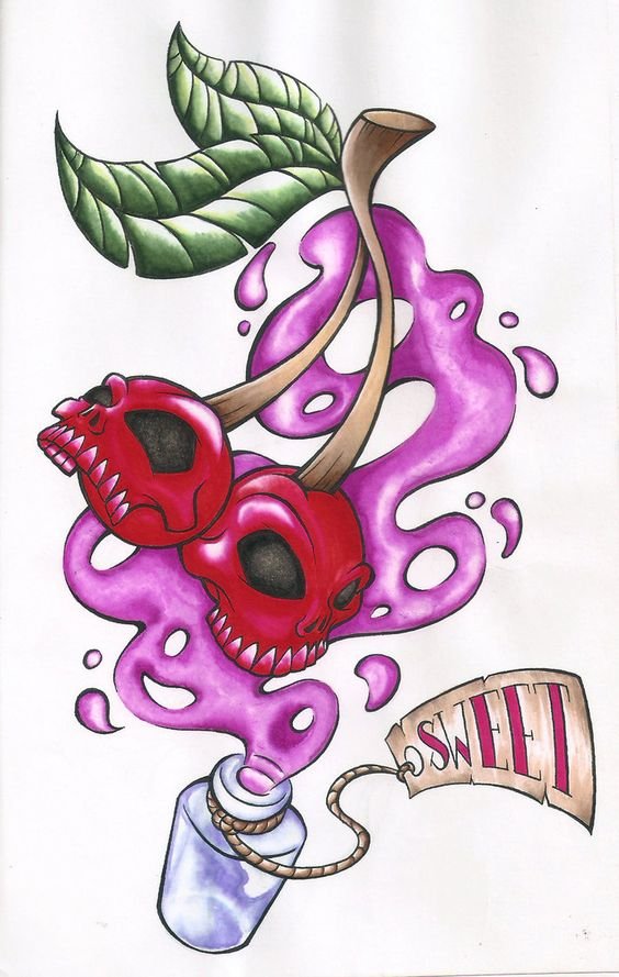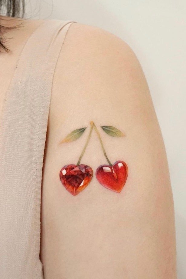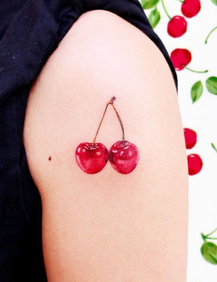 - Ein Tattoo mit dem Bild von Kirschbeeren spricht normalerweise von Unschuld, Zärtlichkeit und Vorsicht.