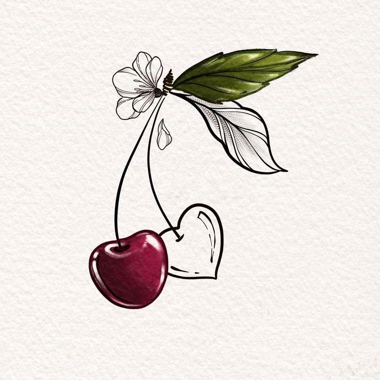 Es ist schwer zu sagen, welche konkrete Bedeutung im Bild einer Kirsche verborgen ist, da die Interpretation auch von den zusätzlichen Details der Zeichnung beeinflusst wird.