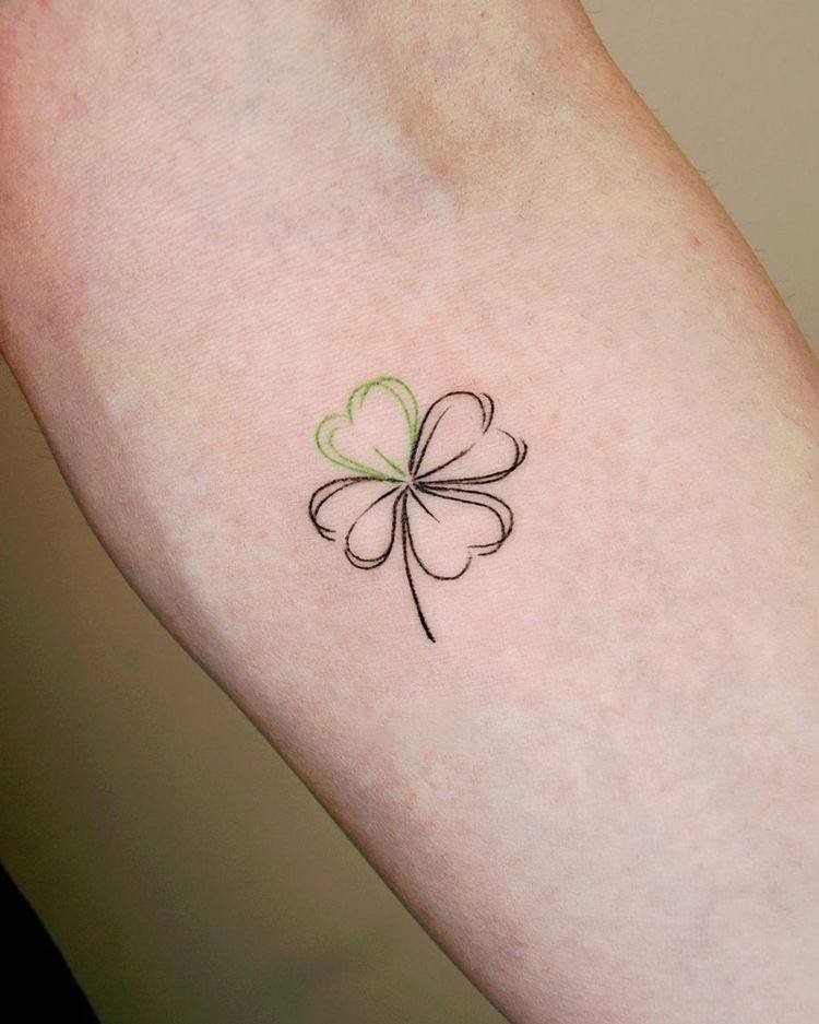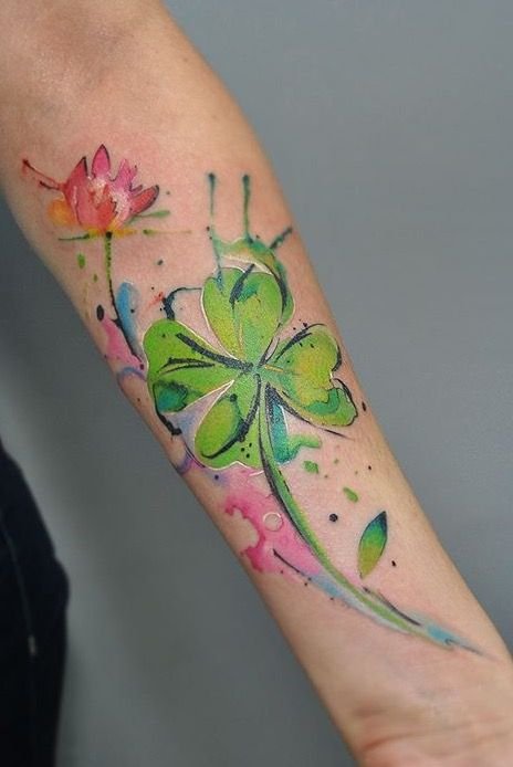 Ebenso bedeutet ein vierblättriges Kleeblatt Ruhm, Reichtum, Gesundheit und Liebe. Für Frauen ist ein Tattoo mit diesem Bild nicht nur ein Zeichen des Glücks. Es gilt, dass die Frauen, die dieses Tattoo auf dem Körper haben, immer geliebt, gepflegt werden und eine glückliche, starke Ehe haben. Man kann oft ein Bild finden, auf dem ein Kleeblatt mit einer Rosenknospe zusammen abgebildet ist. Ein solches Bild ist ein Zeichen der ewigen Liebe.