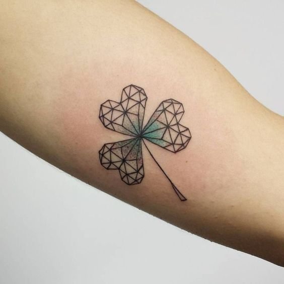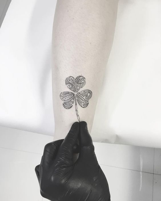 Tätowierung mit einem dreiblättigen Kleeblatt hat eine besondere Bedeutung, jedes Blatt hat seine eigene Interpretation, in der Regel sind das Glaube, Hoffnung und Liebe.