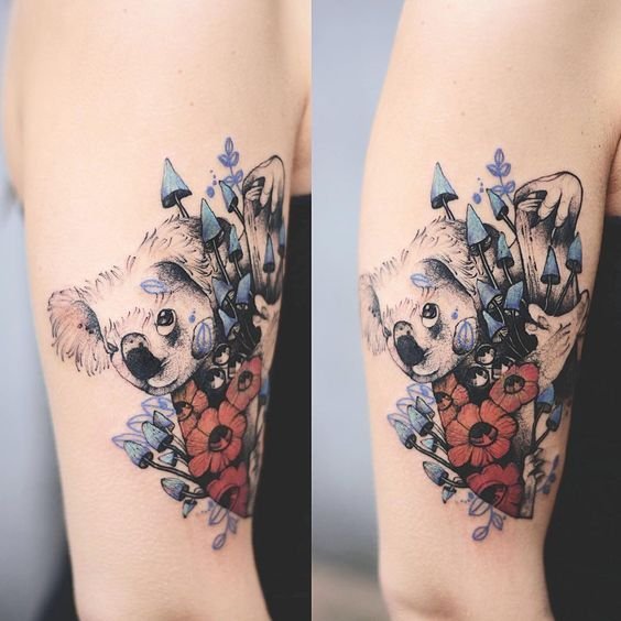 Der Koala verkörpert eine Freundlichkeit, die von einem Tattoo-Träger als einer gutmütigen und fröhlichen Person spricht. Das Verhalten des Tieres selbst ist niedlich genug, so dass der Kunde auch ein positiver und freundlicher Mensch sein wird. Eine Charaktereigenschaft wie z. B. Freundlichkeit kann hier hinzugefügt werden. Wenn du also auf diese Beschreibung passt, ist dies die richtige Tätowierung für dich.