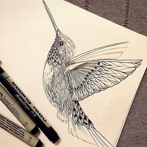 Das Bild der Vogelfedern bedeutet leidenschaftliche Liebe. Der Kolibri hat eine sehr schnelle Fluggeschwindigkeit und unglaubliche Flinkheit. Eine Tätowierung mit diesem Vogel wird am häufigsten als Lebensfreude und fröhliche Emotionen interpretiert. Es ist ein Zeichen von Stärke, großer Energie und bedeutet die Aufgabenerledigung unterschiedlicher Komplexität. Eine weitere interessante Bedeutung für Kolibri Tattoos ist die menschliche sexuelle Energie sowie sein Wohlstand. Ein Tattoo, auf dem ein Kolibri in der Nähe einer Blume schwebt und seinen Nektar trinkt, bedeutet ebenfalls eine süße Liebesbeziehung.
