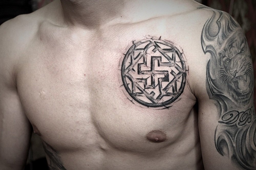 Oft wird das Kolovrat-Tattoo als Talisman verwendet, das nicht nur seinen Besitzer schützt, sondern ihm auch hilft, Schwierigkeiten zu überwinden.
