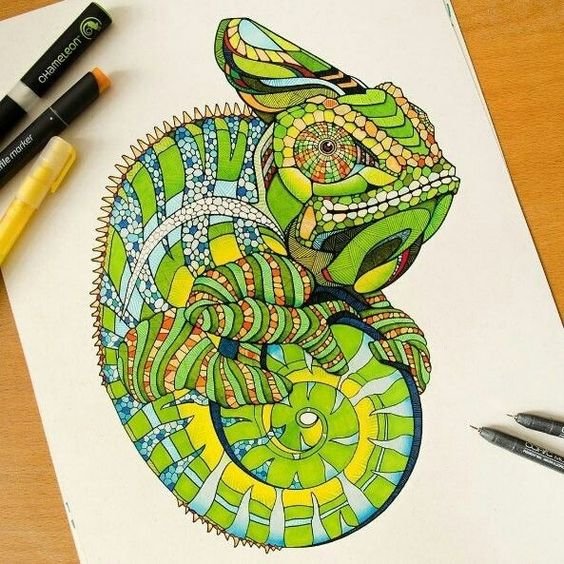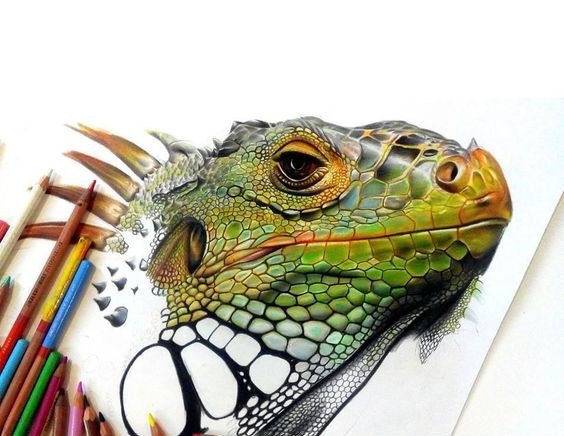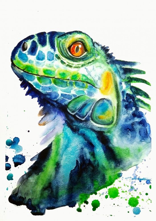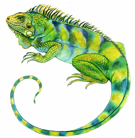 Die Vorlagen von Leguan können in den unterschiedlichen Farben angefertigt werden, meist werden jedoch Grüntöne mit Rot- oder Orangenzusatz verwendet.